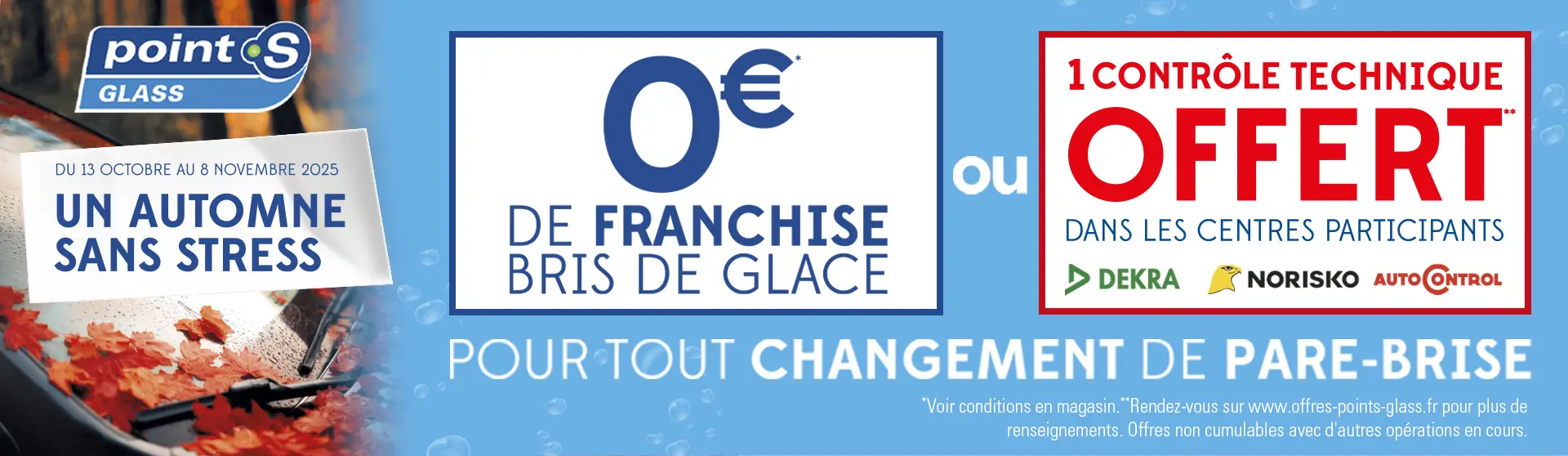Pour tout changement de pare-brise 0€ de franchise bris de glace *